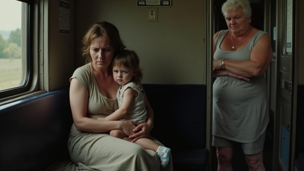 Проводница — полная женщина в форменной куртке — заметно нервничала, переминаясь с ноги на ногу. На её круглом лице читались сомнение и неловкость. За окном мелькали огни вокзала — поезд готовился к отправлению.
