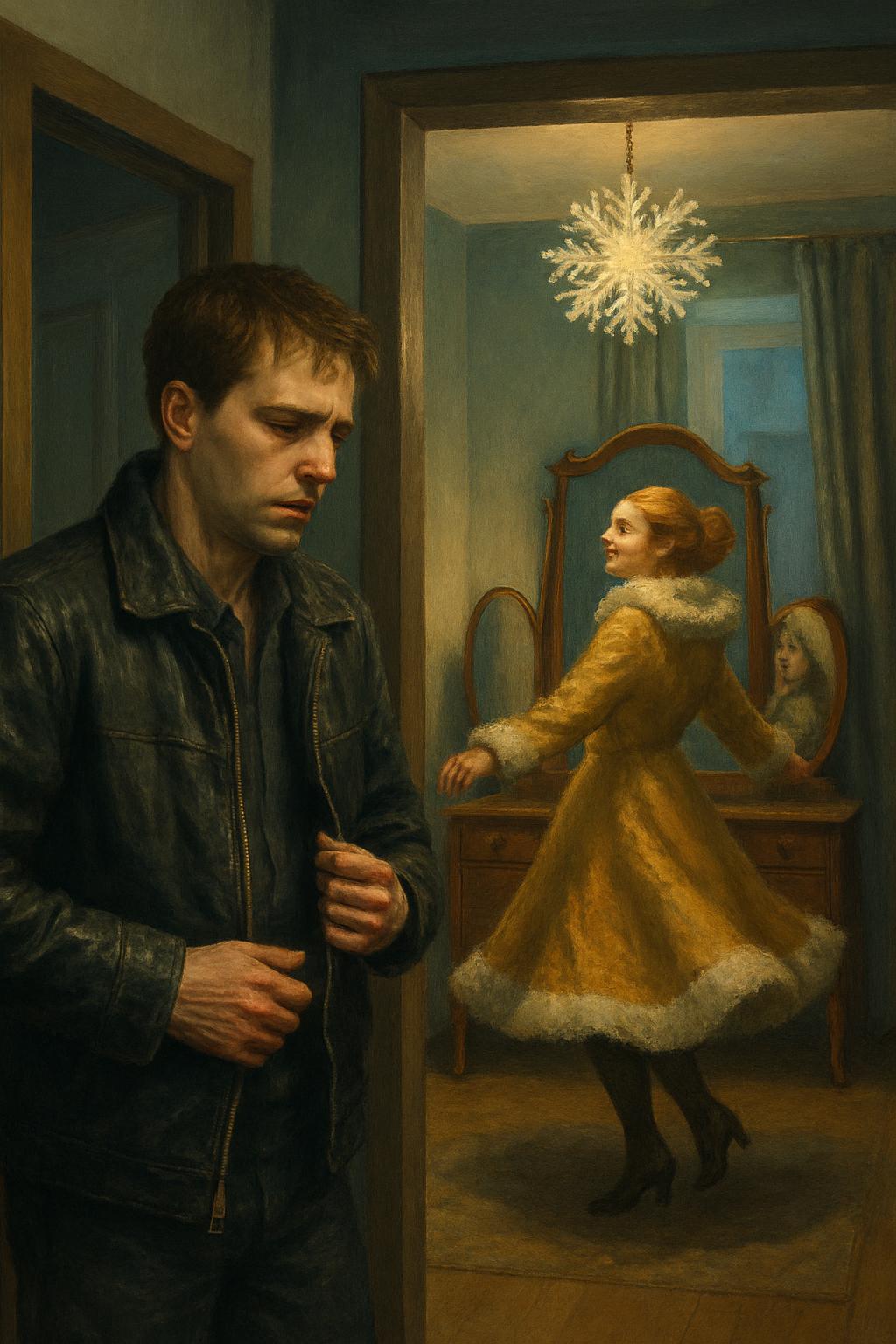 Она обернулась к нему и с мастерством изобразила невинность. Дублёнка мягко поблёскивала под светом люстры-снежинки — той самой, которую они вместе выбрали прошлым Рождеством.