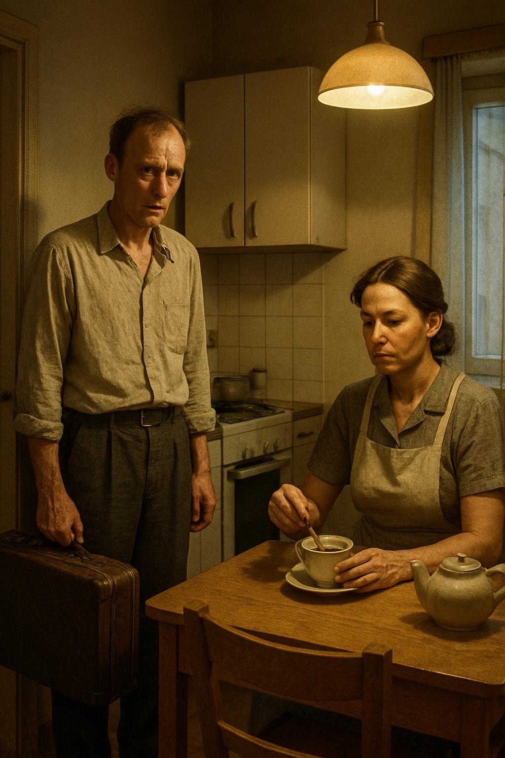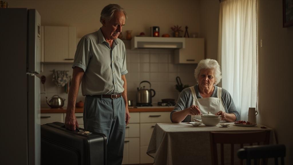 Андрей стоял в прихожей с чемоданом, словно актёр перед выходом на сцену. Четверть века репетиций — и вот настал момент торжественного заявления о начале новой главы. Он ожидал слёз, бурной реакции, может быть, даже мольбы остаться. Но Тамара спокойно сидела на кухне и помешивала чай.