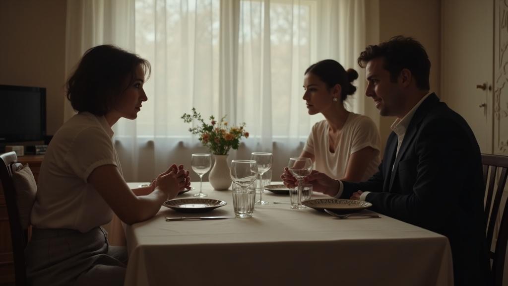 Ужин с будущими родственниками назначили на субботу за неделю до свадьбы. Их квартира — двухкомнатная хрущёвка: чистота до скрипа, салфетки выложены строго по линейке. Людмила, мать Александра — женщина такая, при которой невольно выпрямляешь спину и втягиваешь живот. Тёмные глаза под густыми ресницами смотрят внимательно; голос негромкий — но каждое слово слышно отчётливо даже тогда, когда слушать совсем не хочется.