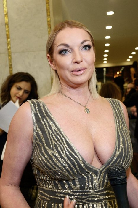 Анастасия Волочкова хотела подчеркнуть формы длинным облегающим платьем с декольте,но наряд подвел артистку. Бюст звезды смотрелся вульгарно. Танцовщица опубликовала несколько снимков с премии в Instagram, спровоцировав осуждения подписчиков.
