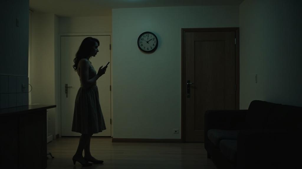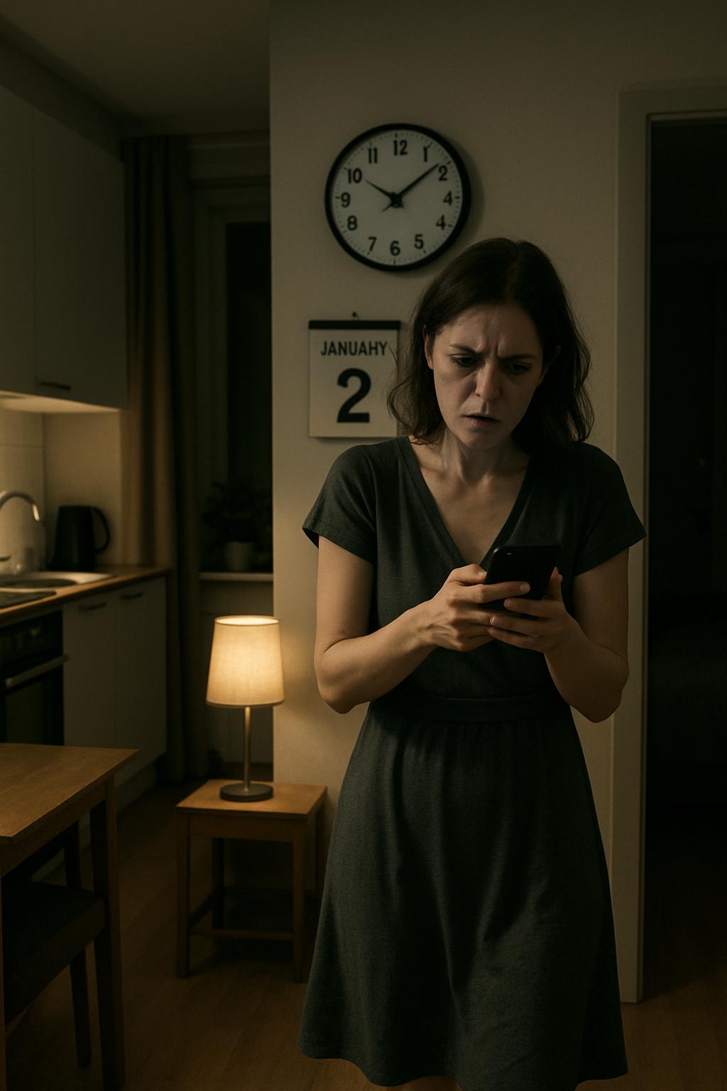 Она достала любимое платье из шкафа и уложила волосы аккуратной волной — хотелось выглядеть красиво для него. Но вот уже почти полночь на носу… а она одна среди четырёх стен; муж где-то пропадает без объяснений. И чем дольше длилось это ожидание, тем мрачнее становились её мысли — одна тревожнее другой.