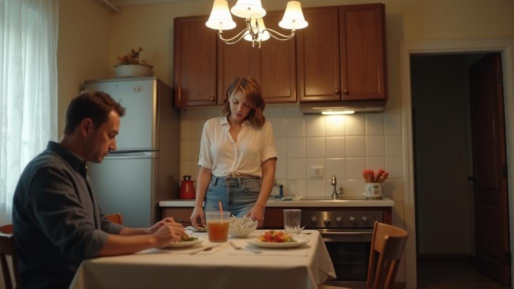 Она не сводила взгляда с Дмитрия, устроившегося напротив за кухонным столом. Тот спокойно доедал котлету, будто только что произнёс нечто совершенно обыденное. Тёплый свет люстры мягко ложился на его лицо, подчёркивая лёгкую щетину и самодовольную улыбку человека, недавно получившего премию.