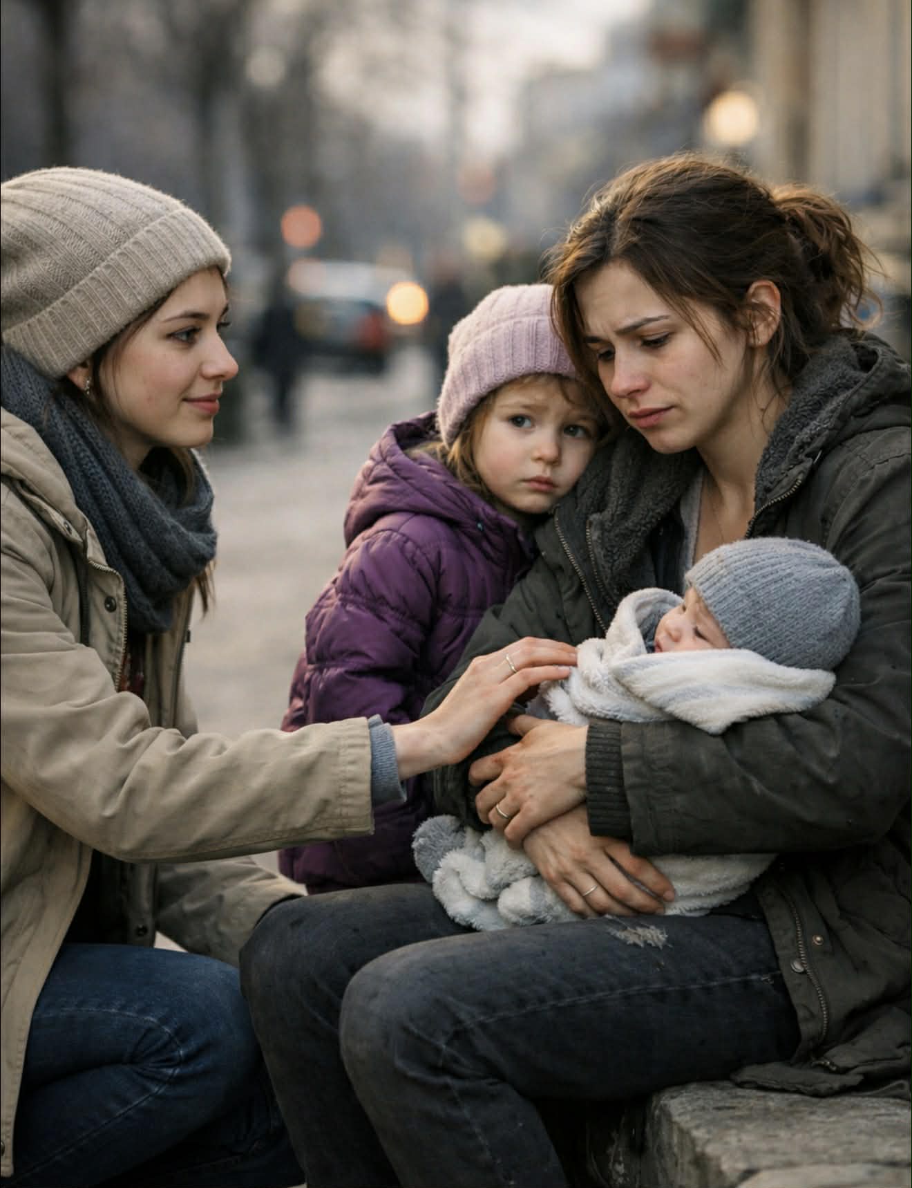 На скамейке в сквере сидела молодая женщина. Лицо её было серым от усталости, на коленях спал мальчик лет четырех, а рядом в коляске тихо ворочалась малышка. Женщина шептала в телефон, и в её голосе была бездна отчаяния: