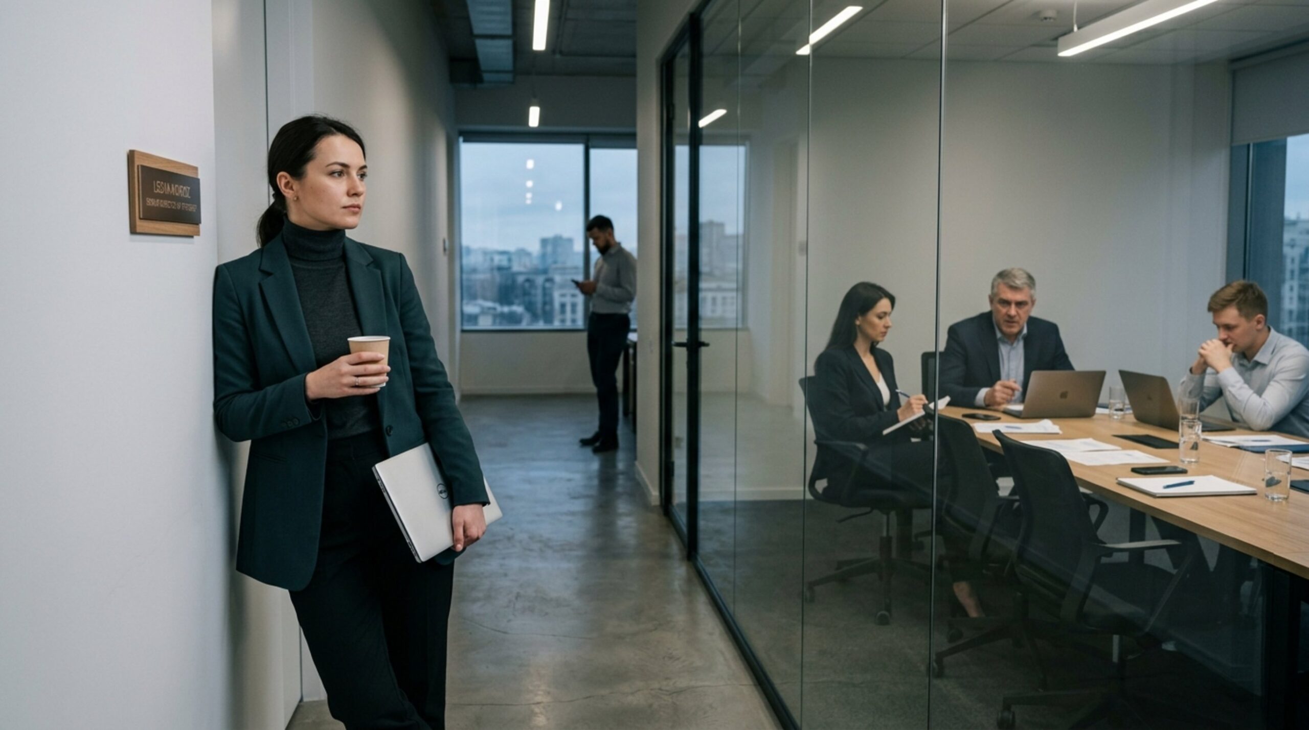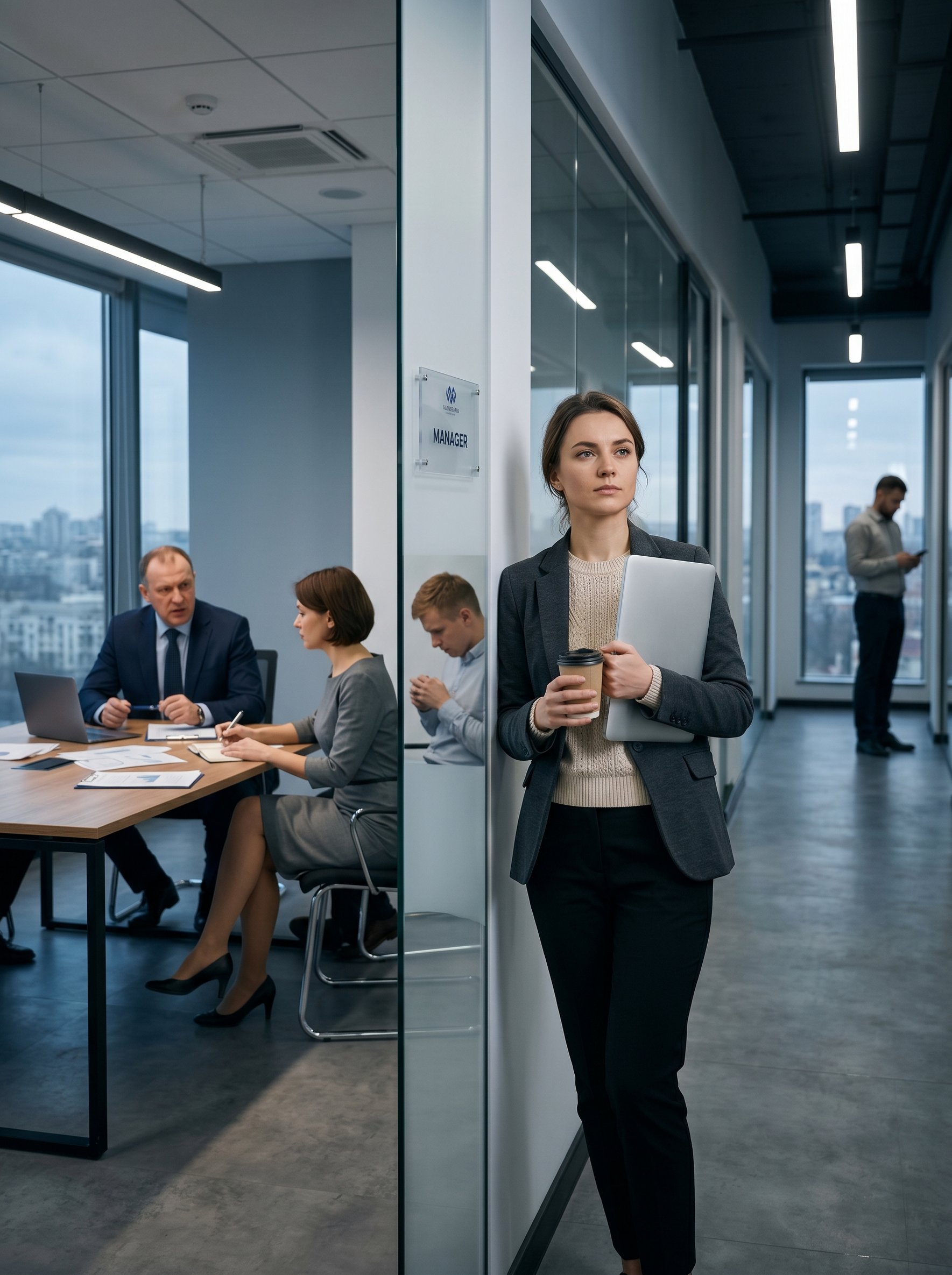 Они задержались в коридоре после презентации. Рябов уже удалился: обменялся рукопожатиями, бросил дежурное «всё на уровне» и скрылся за стеклянной дверью переговорной. Максим стоял в стороне, уткнувшись в экран телефона с таким сосредоточенным видом, будто решал вопрос государственной важности.