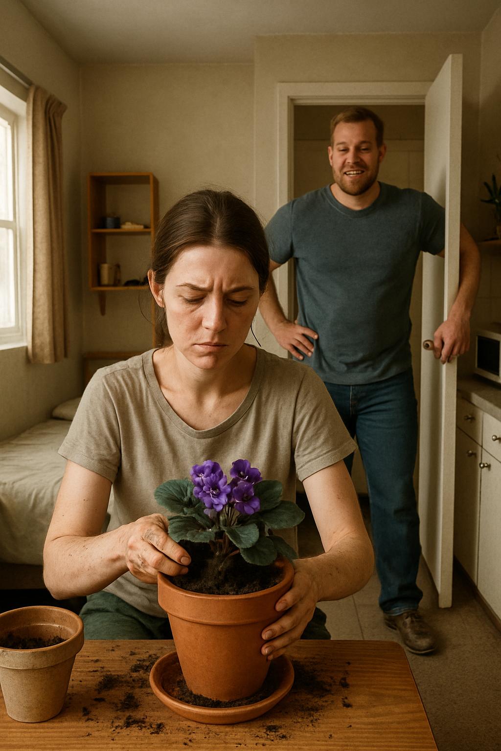 В тот момент я занималась пересадкой фиалки — единственного живого существа в квартире, которое можно было назвать питомцем. Она прекрасно помещалась в нашей крохотной студии, которую я приобрела ещё до свадьбы.