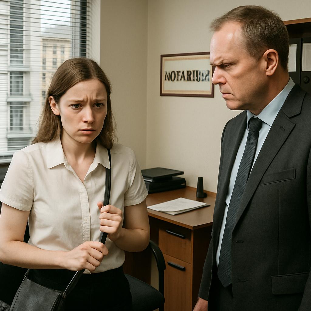 Внутри нотариальной конторы Марию ждал ещё один человек — представительный мужчина лет сорока, в деловом костюме, явно не с базара, с выражением лица таким, будто ему подсунули испорченную конфету.