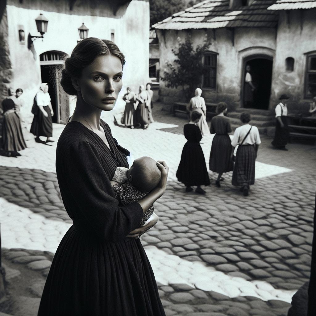 Сельская площадь стала местом суда. Скамейка у лавки — трибуной для обвинений. С каждым днём слухи множились: будто бы Веронику соблазнил какой-то заморский военный; что она служила в чужом доме или занималась чем-то постыдным в далёком городе; что даже имени отца своего сына она не знала.