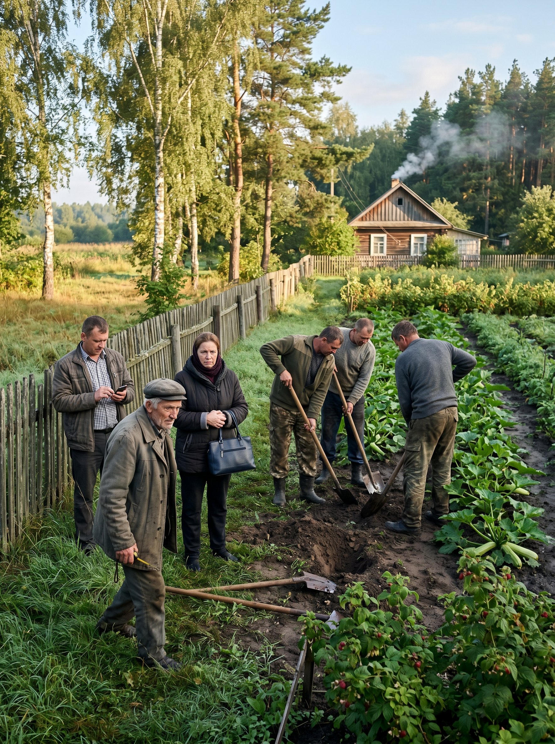Он протянул ей план. Оксана долго всматривалась. По чертежу баня должна была появиться в самом углу — как раз там, где заканчивался её огород и тянулась узкая полоса земли вдоль забора. Эта полоска всегда казалась ничейной: Оксана косила на ней траву, складывала доски, никто претензий не предъявлял. Но на схеме строение заходило на эту территорию и ещё примерно на полтора метра углублялось в её грядки.