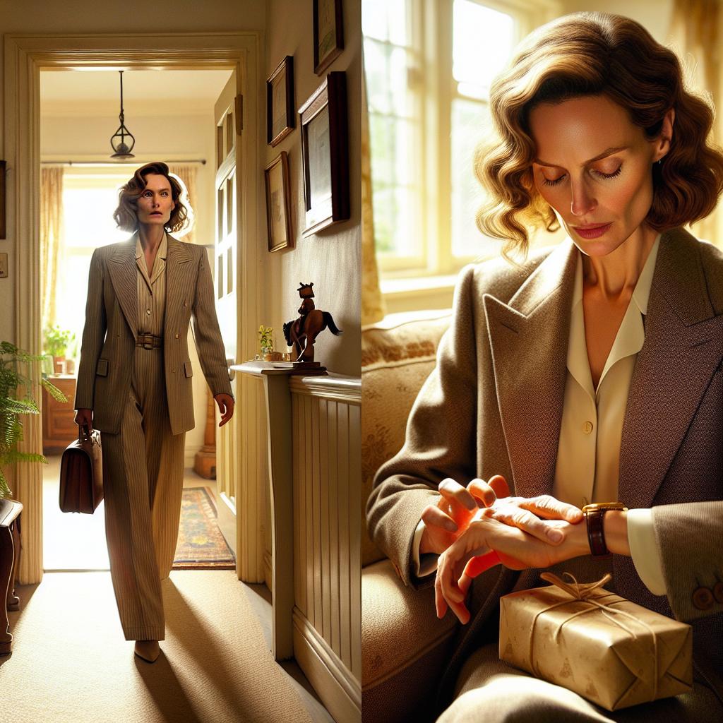 Ганна и Михайло приехали ранним утром. Я вышла навстречу им на крыльцо и замерла от восхищения при виде их силуэтов возле машины. Их внешний вид излучал спокойную уверенность и тонкий вкус: мама была одета в элегантный костюм мягкого песочного оттенка; жемчужное ожерелье подчеркивало строгую элегантность образа; волосы уложены аккуратно и со вкусом. Папа выглядел безупречно: темно-синий пиджак сидел идеально по фигуре; белая рубашка подчеркивала легкий загар лица; галстук с деликатным узором завершал образ мужчины со вкусом; стильные часы на запястье говорили о тонком чувстве стиля без излишней демонстрации достатка.