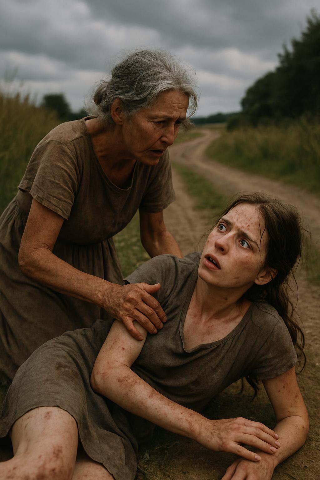 Ганна лежала у края дороги. Только что пришла в себя. Лицо, разбитое до крови, пульсировало болью, выбитое плечо жгло. Всё тело отзывалось тупой болью — словно сплошная открытая рана.