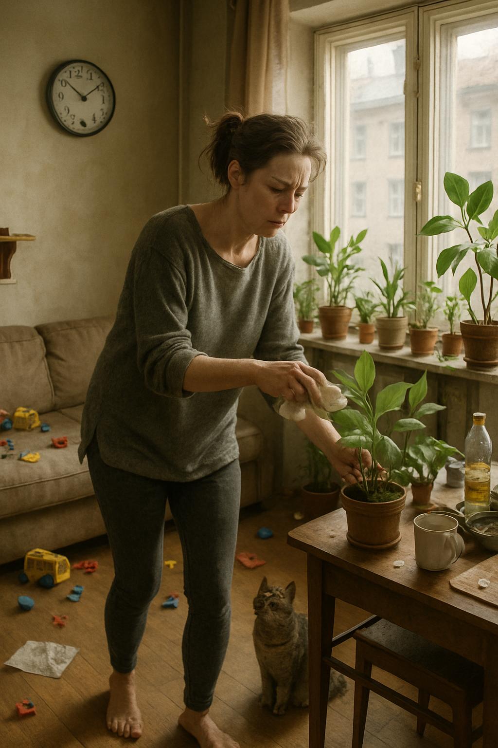 Затем наступало время генеральной уборки по давно заведённому порядку. Начинала она всегда одинаково — с протирания листьев комнатных растений на окне гостиной. Пыли в их жилище было непростительно много; откуда она появлялась — оставалось загадкой даже для неё самой. Все подоконники были заставлены цветами: когда-то до рождения дочери Екатерина увлекалась домашними растениями всерьёз, но теперь уход за ними стал обременительной обязанностью и отнимал массу времени каждую неделю.