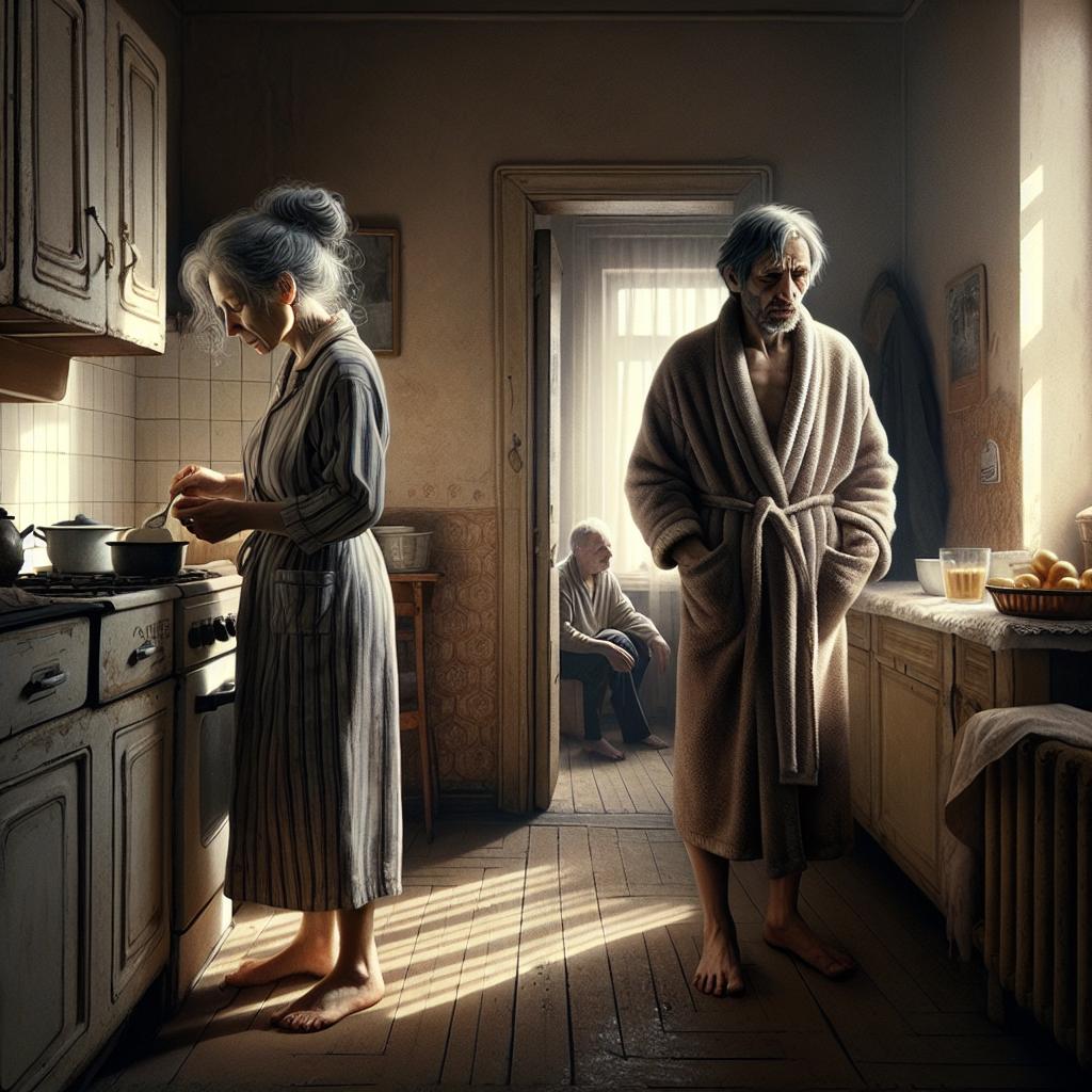 — Опять этот мешок надела? — Михайло появился в дверях кухни раньше обычного, потирая глаза. Из-под майки выпирал живот; щетина на щеках была грубой и неровной. — Неужели нельзя нормальный халат купить? Стыдно же.