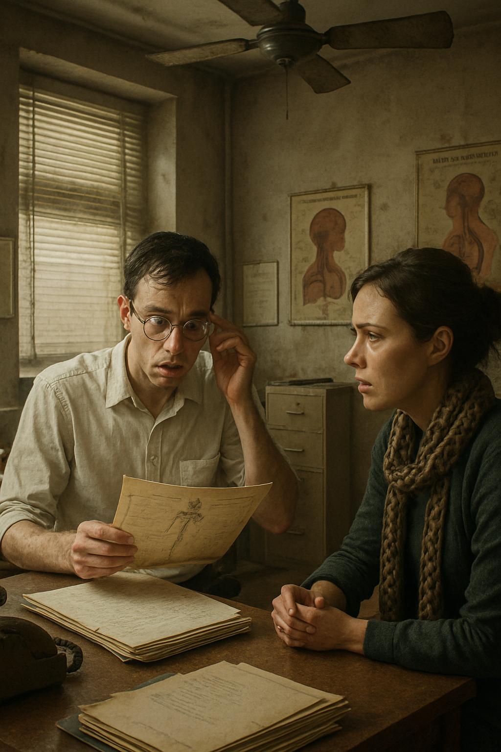 Молодой терапевт Богдан сидел словно окаменевший — будто увиденное лишило его способности двигаться. Очки в тонкой металлической оправе медленно сползали к самому краю носа, вот-вот готовые упасть на ветхий листок.