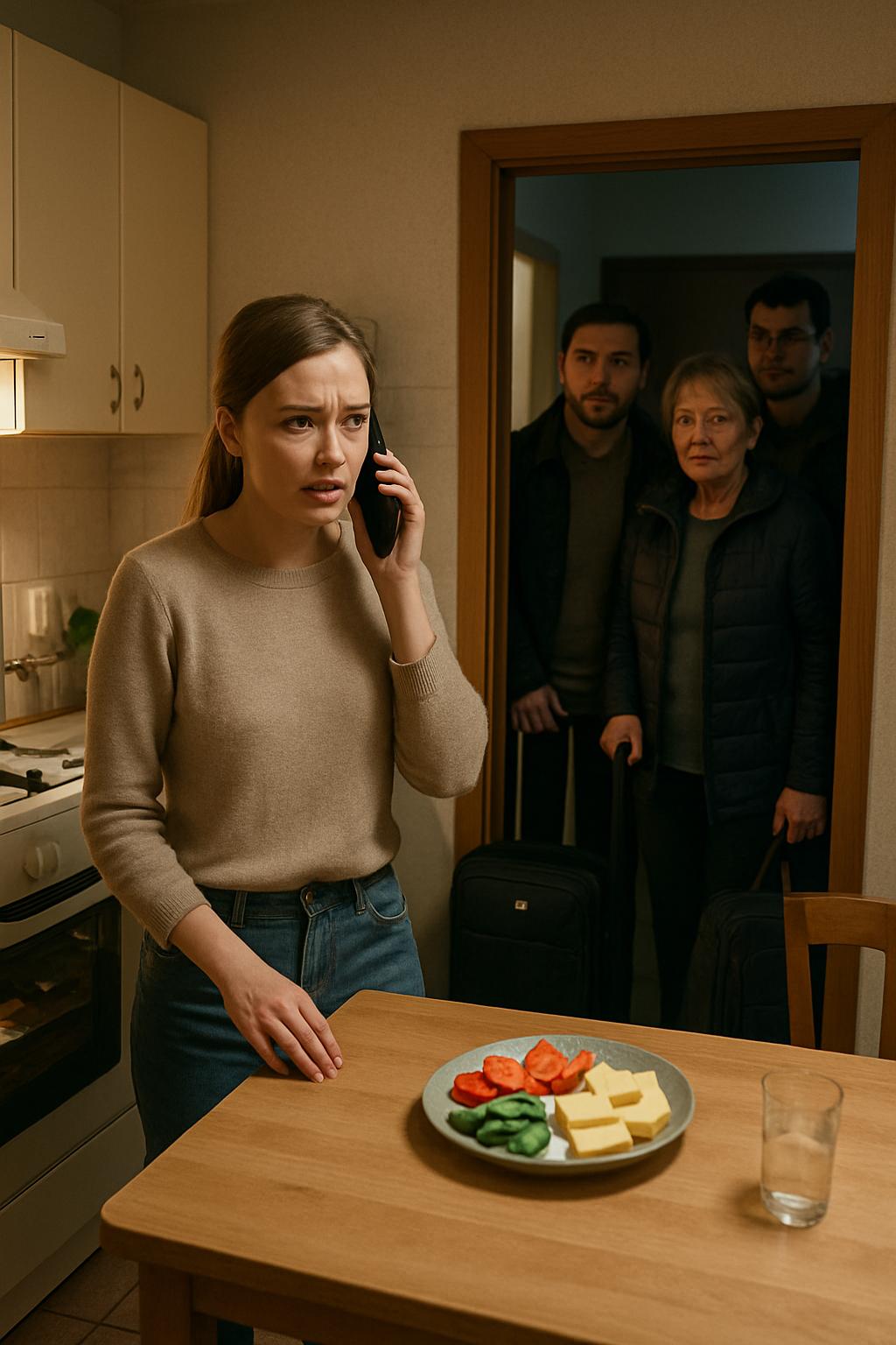 Александра открыла и остолбенела: на пороге стояли трое с чемоданами и сумками. Богдан — загорелый, в знакомой чёрной куртке; рядом с ним женщина лет шестидесяти в тёплом кардигане с усталым выражением лица; за ней — молодой парень лет двадцати с наушниками на шее и спортивной сумкой.