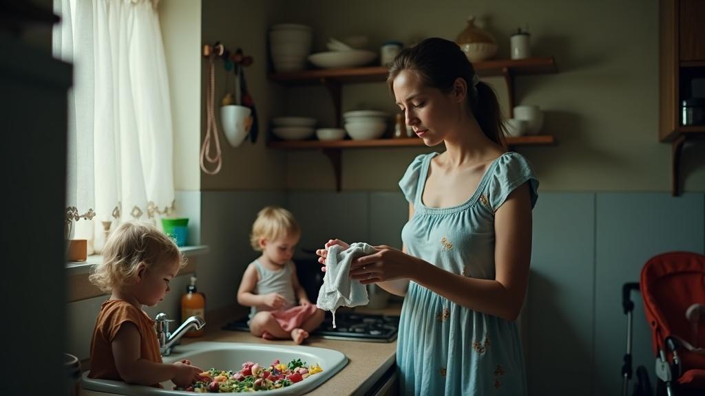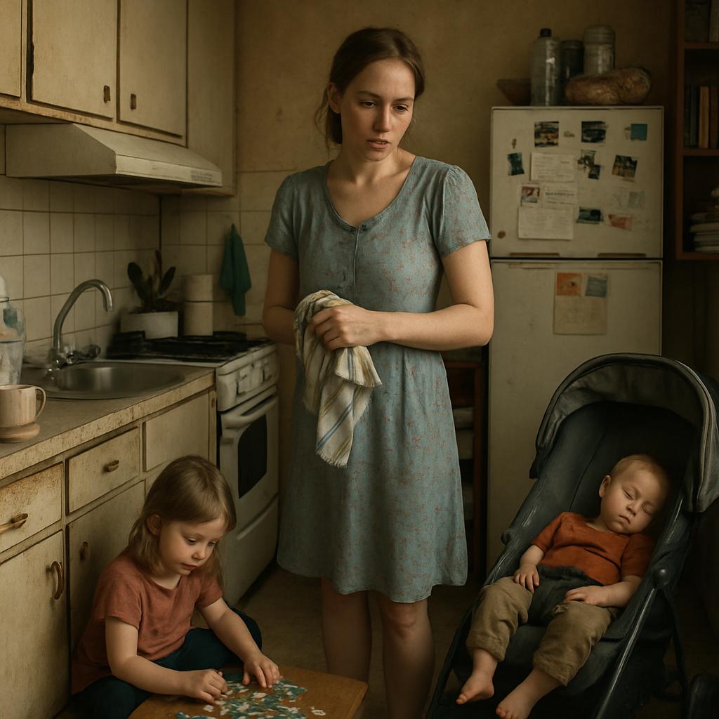 Оксанка вытерла руки полотенцем. Её взгляд упал на детей. Мария, четырёхлетняя девочка, сидела на полу и собирала пазл. Макар, которому было два с половиной года, мирно спал в коляске. Такие крошечные. Такие беззащитные.