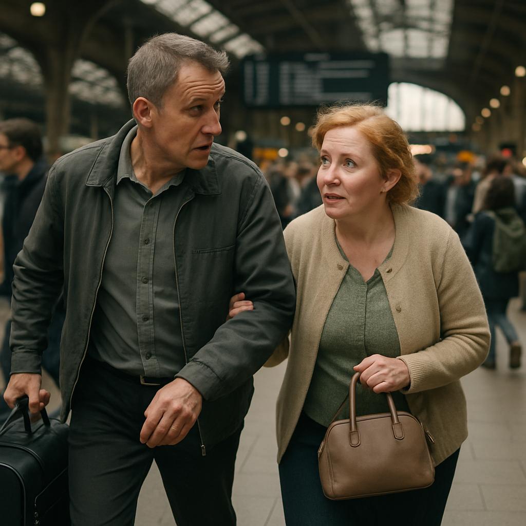 Они шли по вокзалу к нужной платформе, переговариваясь на ходу и стараясь обходить других пассажиров. Даже в их лёгкой перебранке чувствовались забота и нежность тех, кто прожил вместе долгие годы.