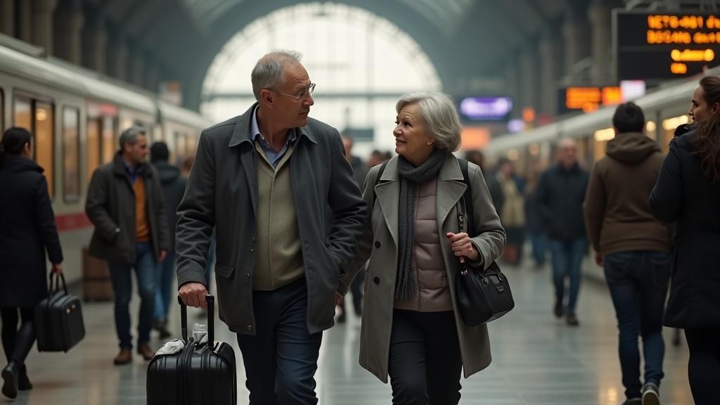 Они шли по вокзалу к нужной платформе, переговариваясь на ходу и стараясь обходить других пассажиров. Даже в их лёгкой перебранке чувствовались забота и нежность тех, кто прожил вместе долгие годы.