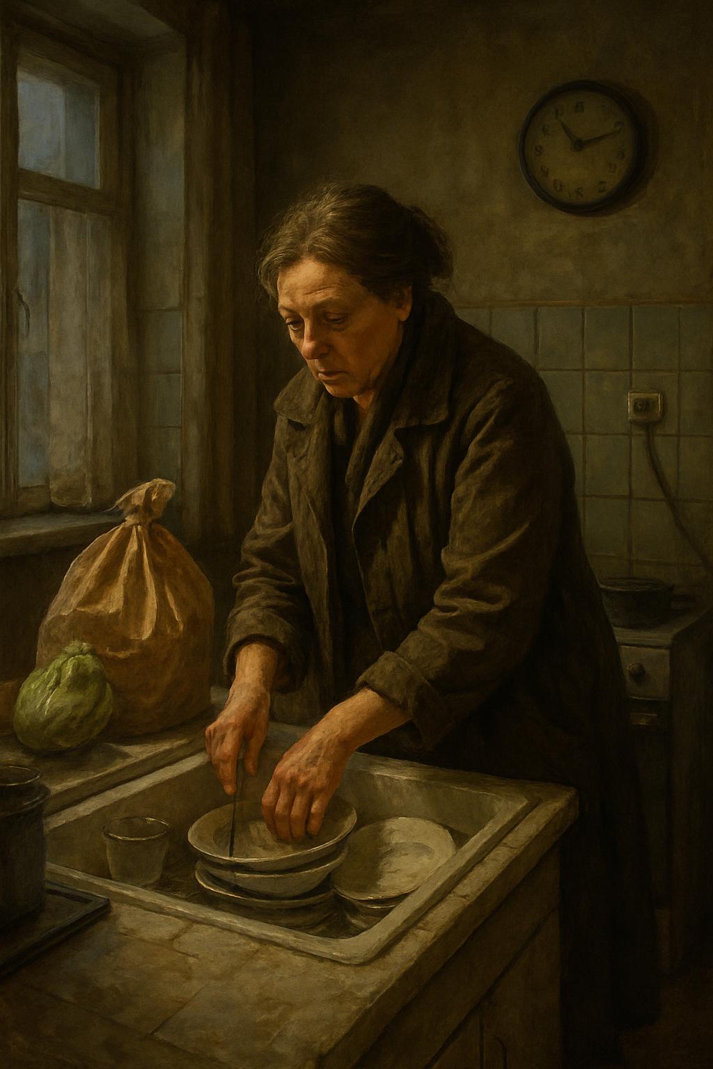 Оксана прошла на кухню и увидела раковину полную грязной посуды: очевидно, муж что-то себе готовил и даже не подумал прибраться после себя. Она молча открыла воду и взялась за губку; усталость накатила волной, но останавливаться ей совсем не хотелось — лучше закончить всё сейчас же, чем откладывать до утра.