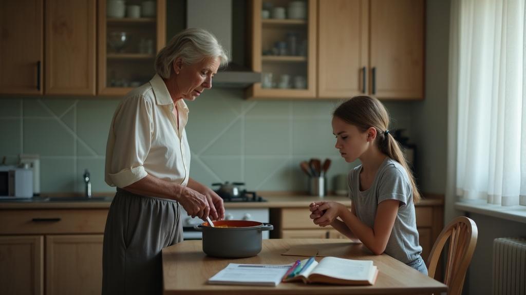 К двум часам дня Оксана стояла перед зеркалом в спальне и надевала своё единственное чёрное платье для официальных случаев. Мария сидела неподалёку на кровати и наблюдала за ней молча.