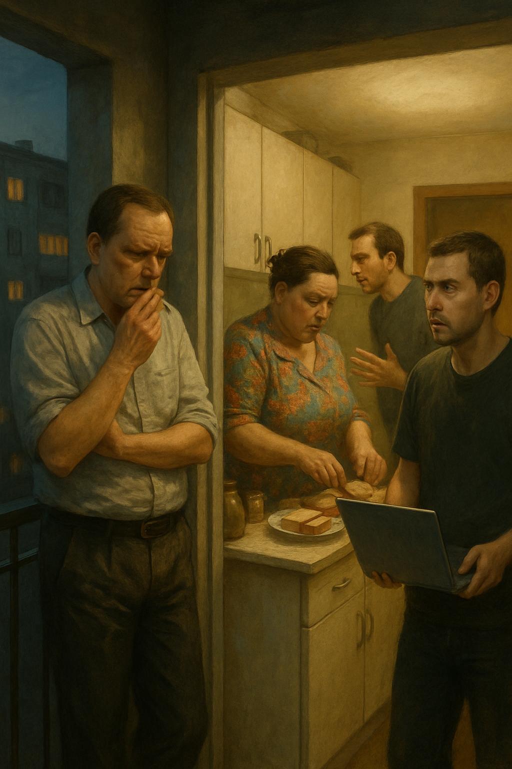 Ярослав вернулся в квартиру. На кухне хозяйничала тёща Лариса — крупная женщина в пёстром халате, неторопливо намазывающая маслом уже четвёртый бутерброд.
