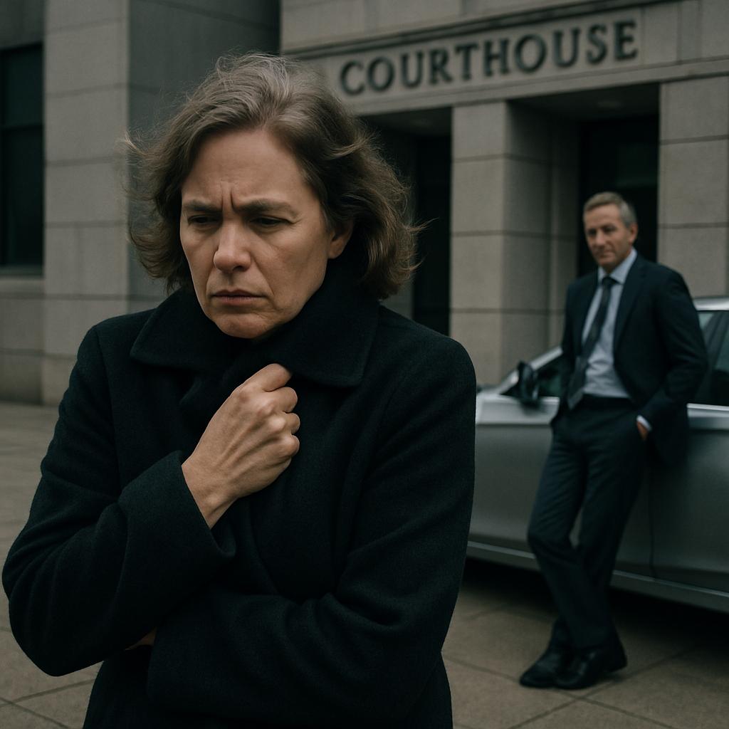 Перед зданием суда гулял пронизывающий октябрьский ветер. Оксана машинально запахнула пальто и поправила шарф, который когда-то связала собственными руками — в те далёкие, мирные времена. Рядом, облокотившись на серебристую машину, стоял Дмитрий. Его одежда сидела безукоризненно, а лицо оставалось равнодушным.