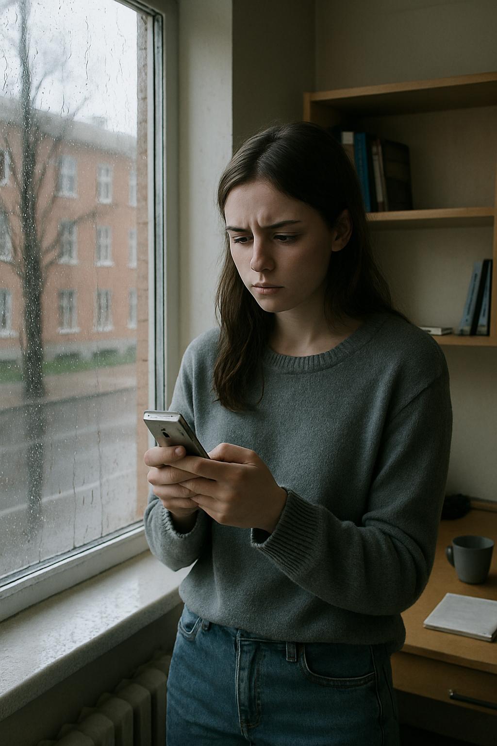 Леся стояла у окна своей комнаты в общежитии, наблюдая, как дождевые капли скатываются по стеклу, размывая очертания улицы за ним. В руках она сжимала старенький мобильник и уже в третий раз перечитывала полученное сообщение.