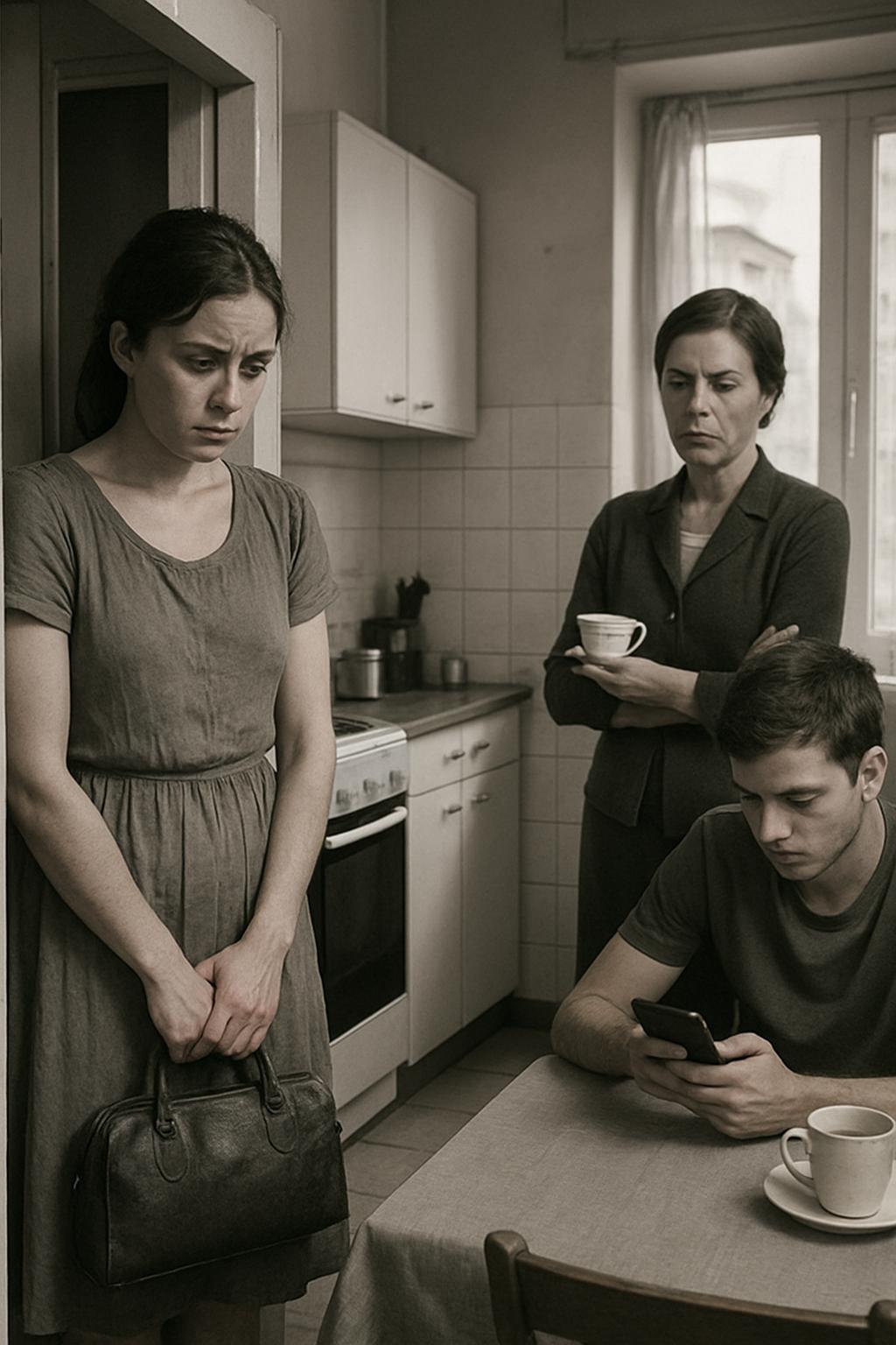 Роман сидел рядом и не отрывал взгляда от телефона. Он листал ленту с таким видом, будто ни матери, ни жены рядом вовсе не существовало — как и эта кухня с напряжённой тишиной.