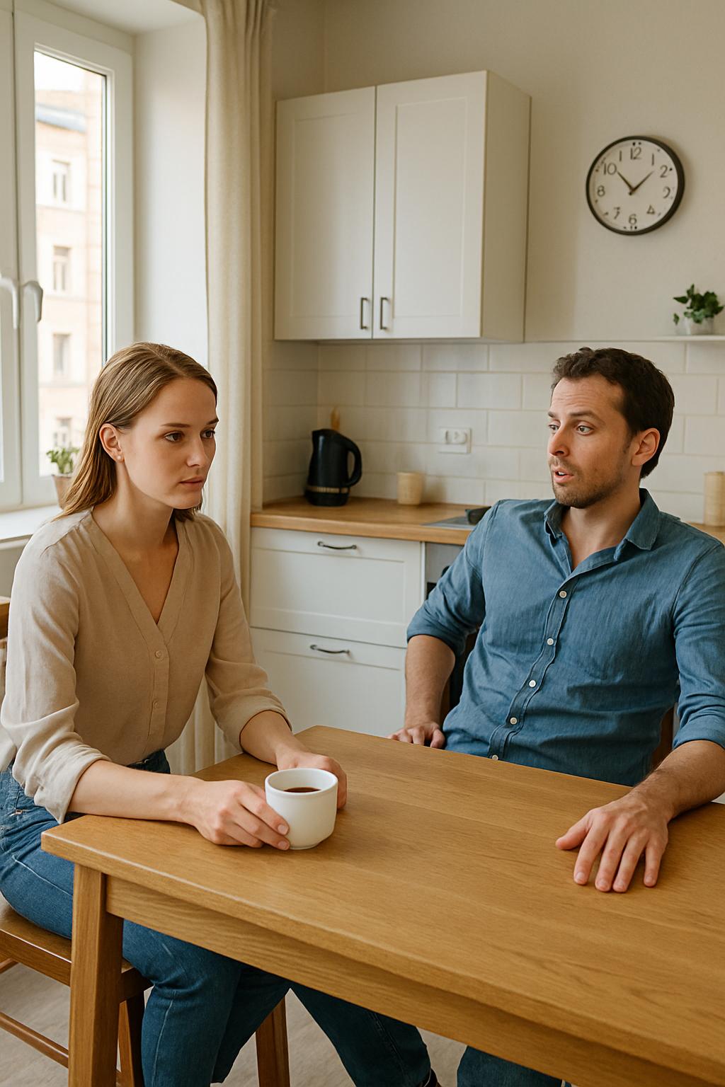 Оксанка медленно поставила чашку чая на блюдце. В кухне стояла тишина: только слышно было, как тикают настенные часы и где-то внизу во дворе лает собака. Квартира, в которой они находились, принадлежала ей. Она приобрела её ещё до знакомства с Тарасом — на деньги, которые копила с самой первой зарплаты, экономя буквально на всём. Двухкомнатная, светлая, с высокими потолками в старом доме в центре Киева. Она помнила каждый шаг: как выбирала планировку, как радовалась получению ключей и как оформляла интерьер по своему вкусу — светлые стены, деревянный пол и большие окна с видом на тихий двор.