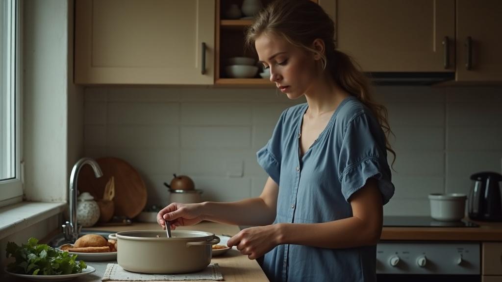 Капли дождя барабанили по подоконнику, складываясь в странный ритм, словно зашифрованное послание, смысл которого ускользал от меня. Я стояла на кухне, медленно размешивая грибной крем-суп — любимое блюдо моего мужа, Богдана. На столе уже дожидался салат, в воздухе витал аромат свежего хлеба. Всё выглядело безупречно, как и наша жизнь — тщательно выстроенная до мельчайших деталей.