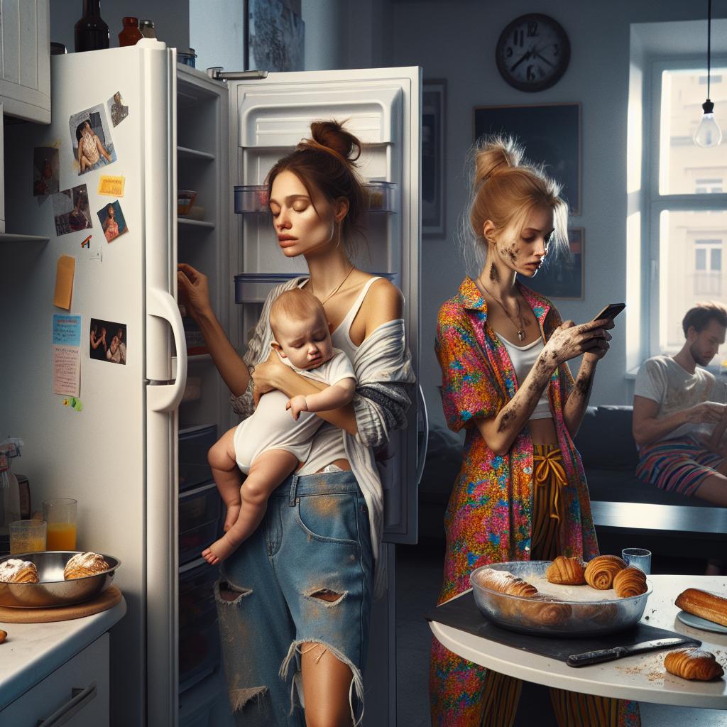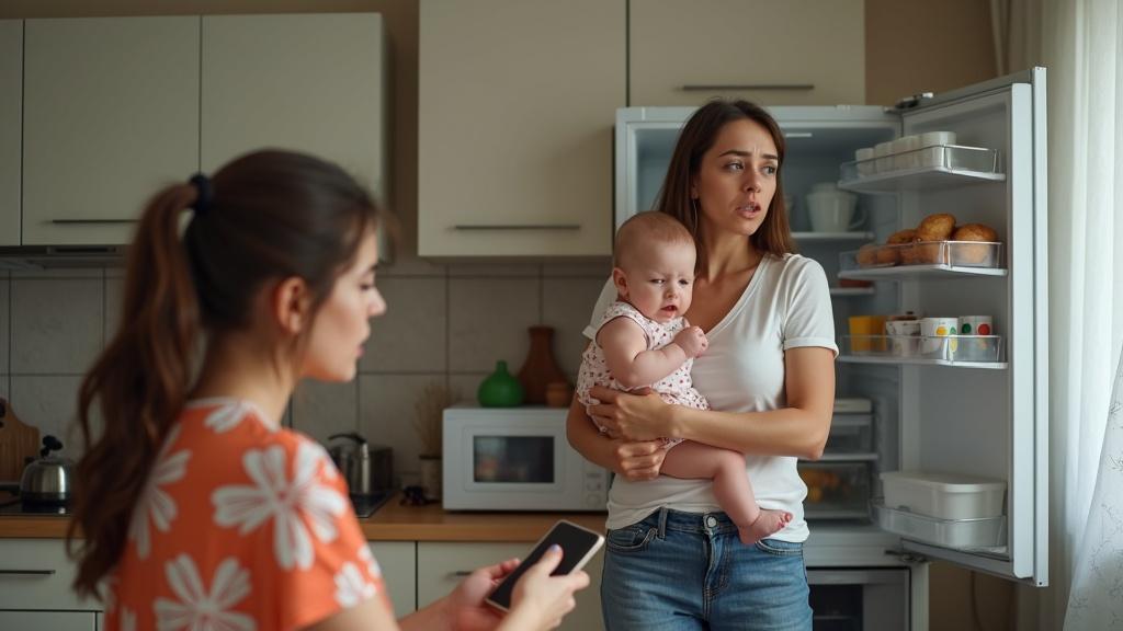 Молодая женщина стояла у распахнутого холодильника, держа на руках восьмимесячную Милану. Девочка с интересом тянулась к яркой упаковке йогурта, а Ганна лихорадочно осматривала полки в поисках контейнера с пирожками, которые она испекла вчера вечером для гостей. Вместо него зияла пустота.