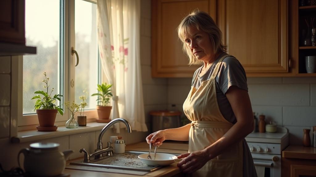 Дарина молча собрала со стола посуду. Его тарелка осталась почти полной — ужин снова пропал зря. Она поставила грязную посуду в раковину и открыла кран. Поток воды ударил по металлу мойки, заглушая звуки телевизора из гостиной, где устроился муж.