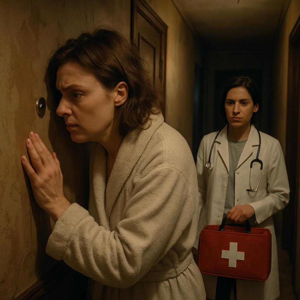 Заглянув в глазок, увидела невысокую женщину в белом медицинском халате. На шее у неё висел фонендоскоп, а в руке была сумка с красным крестом.