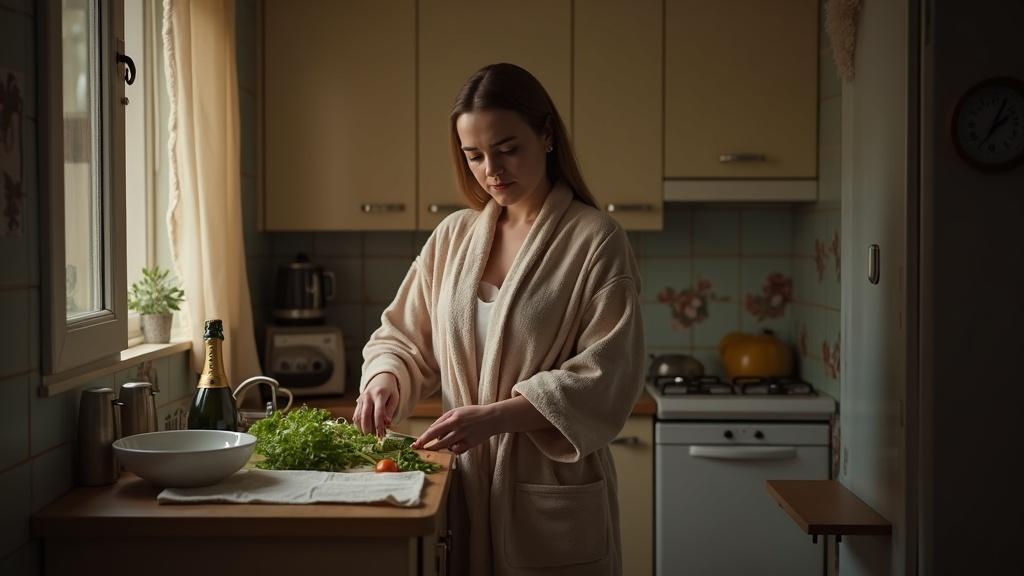 Я нарезала оливье. Кубики выходили ровные, аккуратные. Даже когда готовила только для себя, не позволяла себе халтурить. Это был мой способ держаться на плаву. Не скатиться в образ женщины в застиранном халате, которая ест прямо из кастрюли перед телевизором.