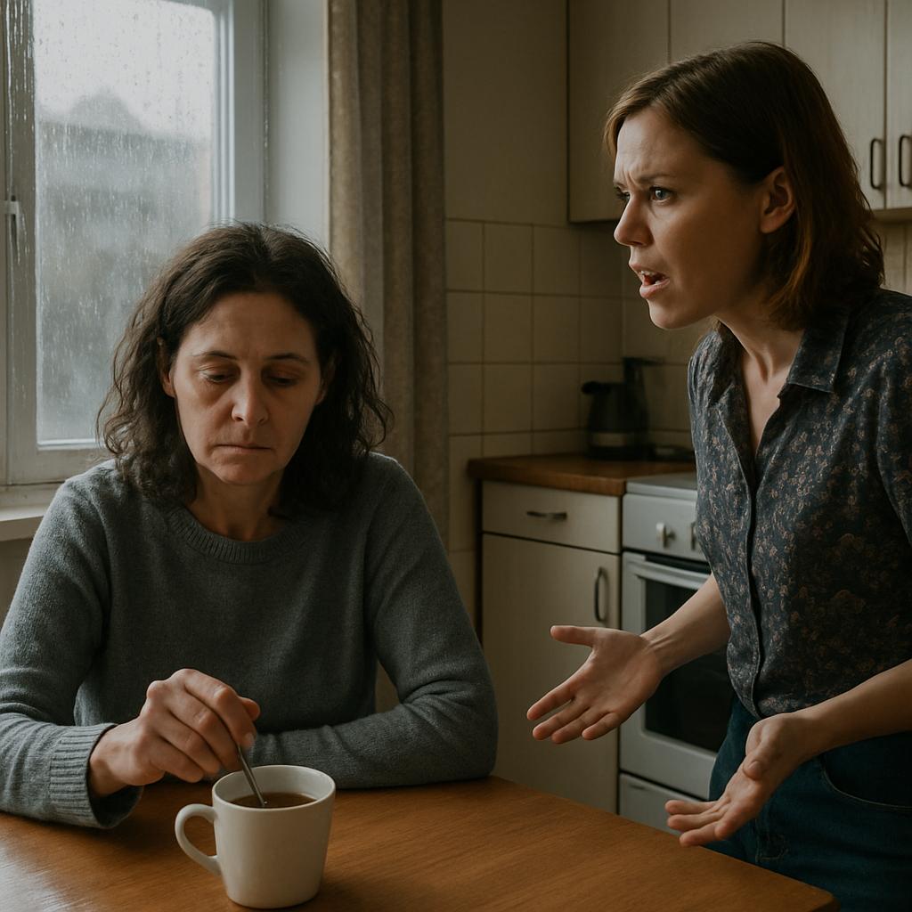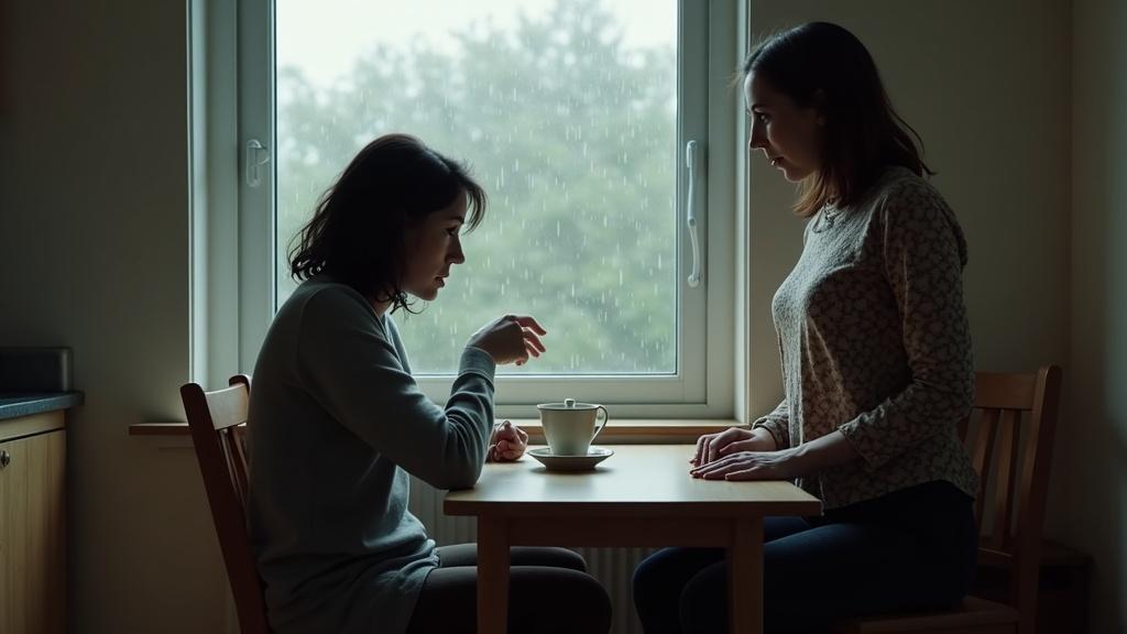Дарина сидела на кухне у сестры и смотрела в серое небо за окном. Капли дождя с глухим стуком били по стеклу. Мысли её путались — всё в жизни пошло наперекосяк.