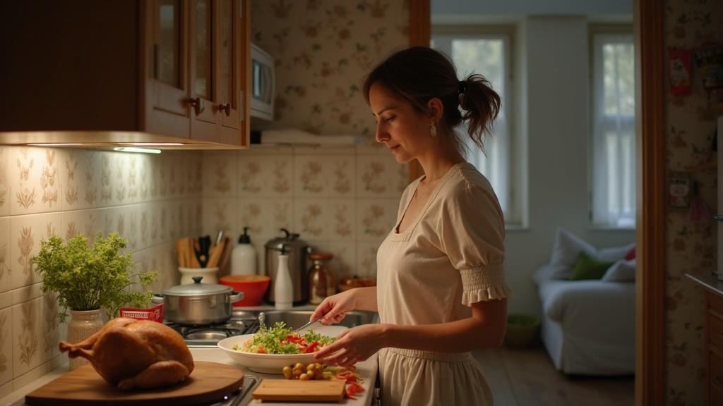 Дома царило оживление. Включив радио, Оксанка занялась нарезкой ингредиентов для оливье. Этот салат у неё всегда выходил особенно вкусным — рецепт достался от бабушки и хранился как семейная реликвия.
