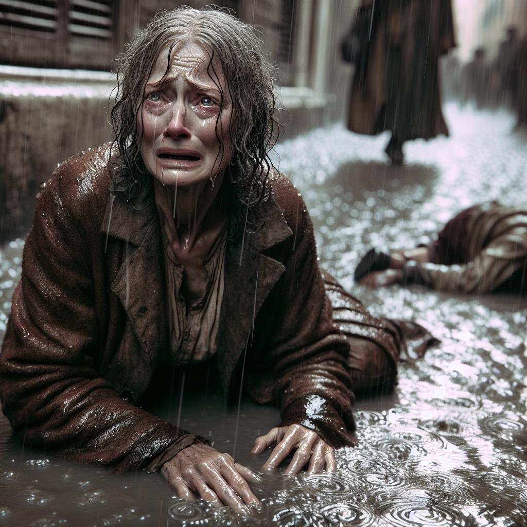 Не колеблясь ни секунды и забыв о собственной безопасности, София рванулась через дорогу прямо под проливной ливень. На мокром асфальте она поскользнулась и упала на колени; острые булыжники разодрали кожу до крови. Но боль не остановила её: поднявшись с усилием и прихрамывая от ушиба, она поспешила к ребёнку.