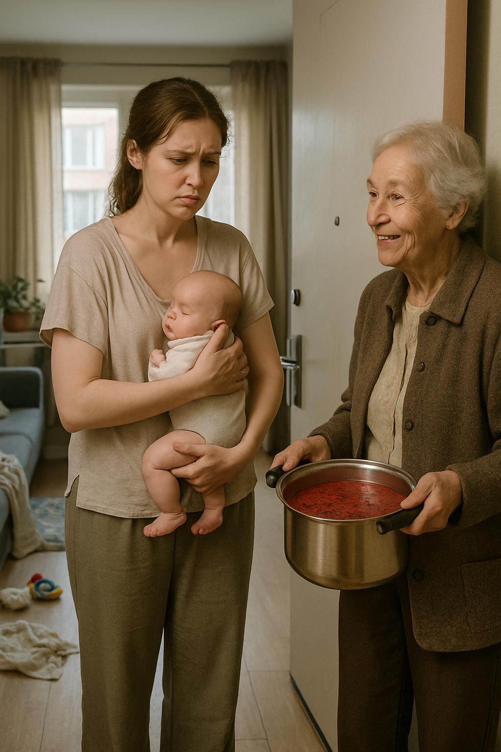 Юлия укачивала двухмесячную Екатерину, когда в прихожей раздался звонок. На пороге появилась соседка Нина с кастрюлей ароматного домашнего борща.