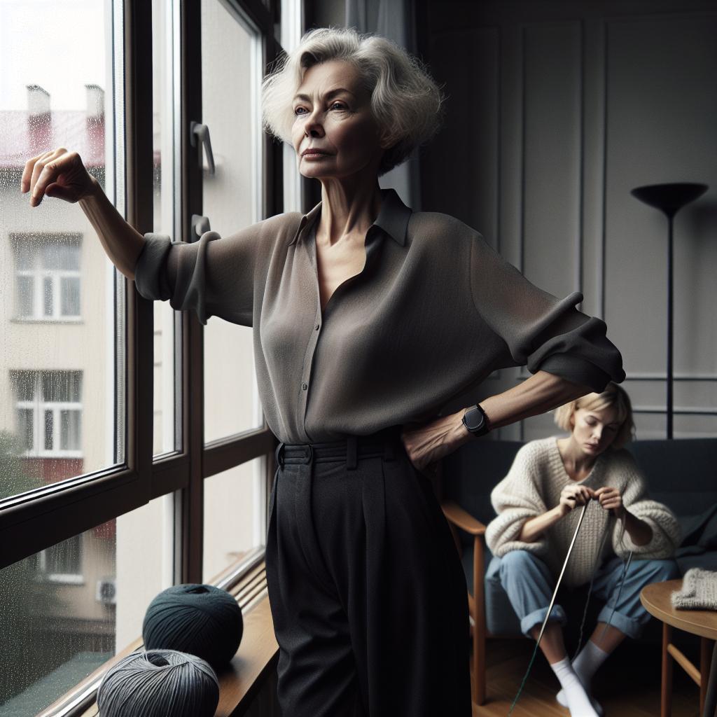 — Прекрати бренчать своими спицами! И так голова раскалывается! Неужели больше нечем заняться? — буркнула она, не скрывая досады.