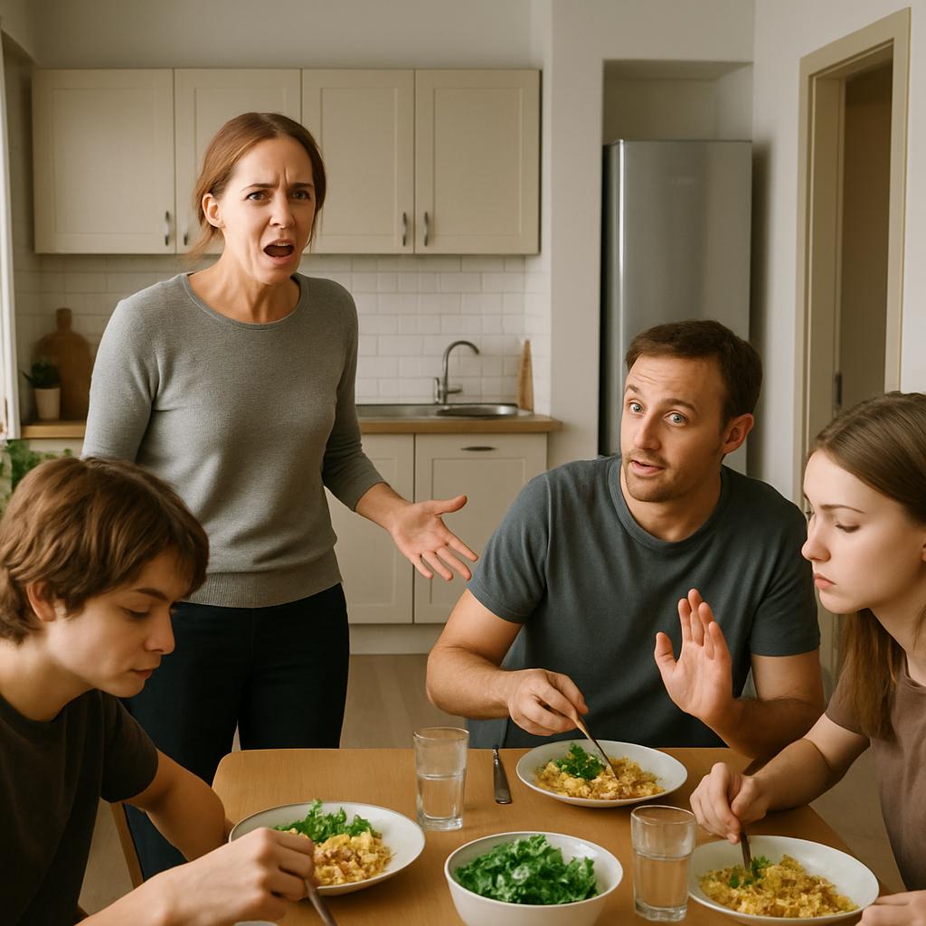 Мария выразительно закатила глаза в ответ на упрёк матери, но вступать в спор не стала. В кухне воцарилась напряжённая тишина. Роман и дети поняли: сегодня Оксана явно была не в настроении, и лучше её лишний раз не тревожить.