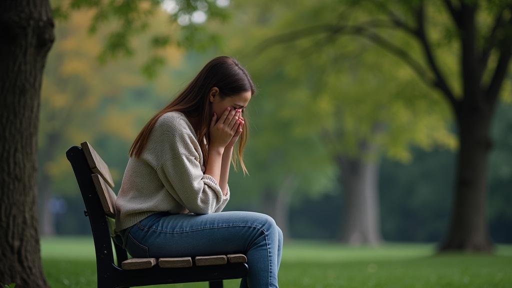 Ганна сидела на лавочке в глубине парка, тихо всхлипывая. Она специально забралась подальше, надеясь, что здесь никто её не заметит — ведь мало кто хочет показывать свои слёзы посторонним.