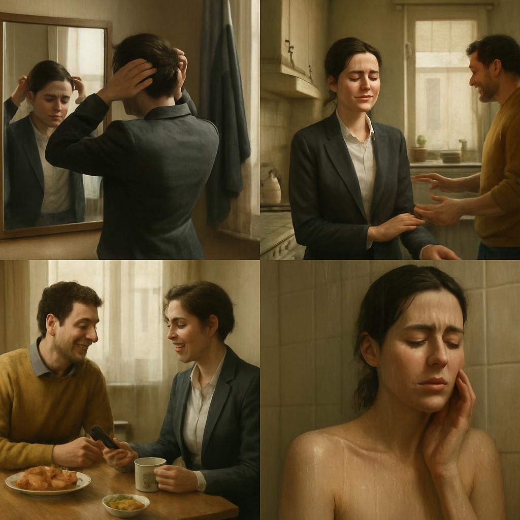 Спустя час под струями душа Зоряна плакала молча; тёплая вода смывала слёзы с лица, но не облегчала тяжесть чувства вины внутри неё. Она представляла реакцию Богдана: его растерянность… боль… Если бы он узнал…