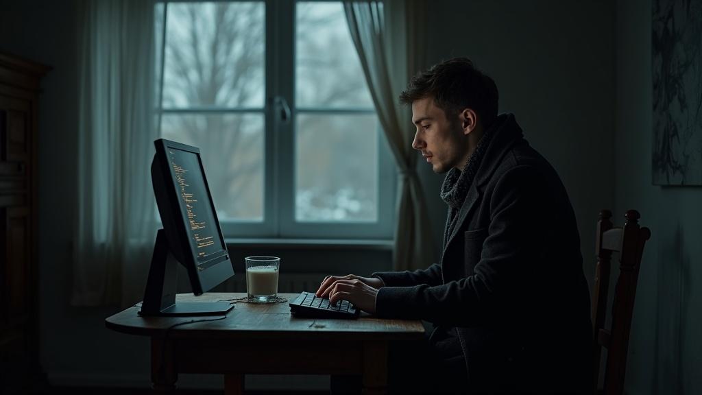 Илья сидел за столом, устремив взгляд на экран, где в полумраке мерцали строки кода.