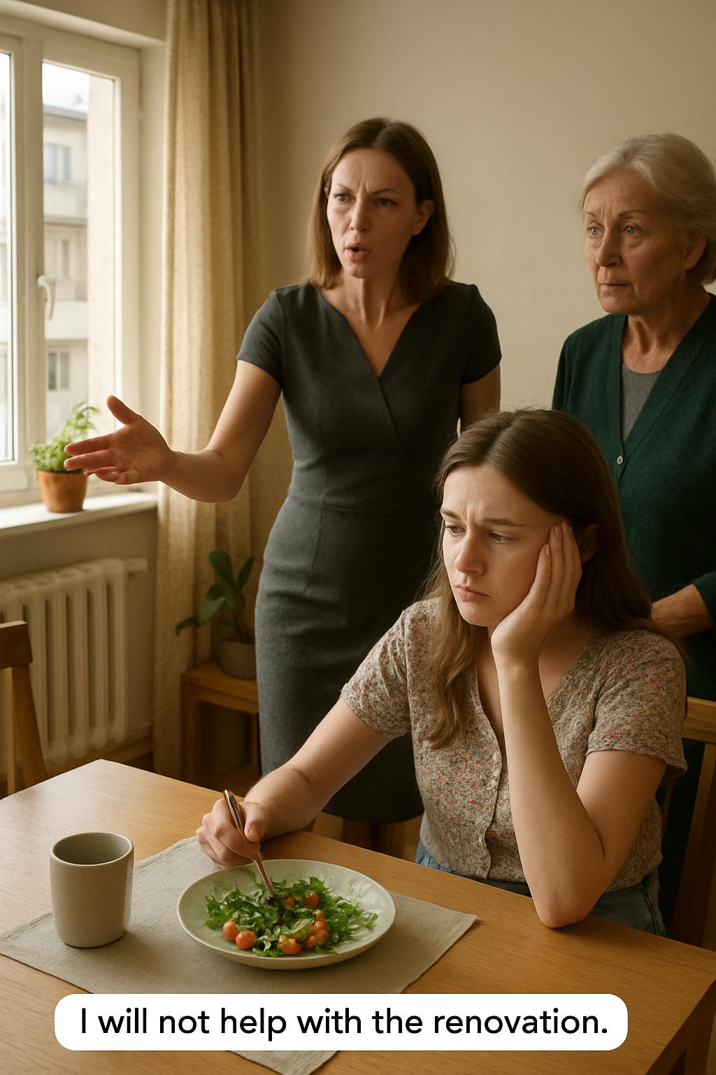 — Я помогать Александре с ремонтом не буду, — произнесла Оленька негромко, но чётко.
