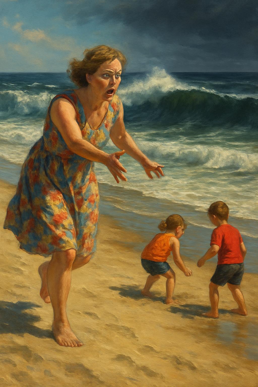 Всего за несколько мгновений мощный прилив подхватил малышей и унёс их в открытые воды. Охваченная паникой, Оксана бросилась к берегу, но было уже слишком поздно. Николаев, поглотивший две юные жизни…