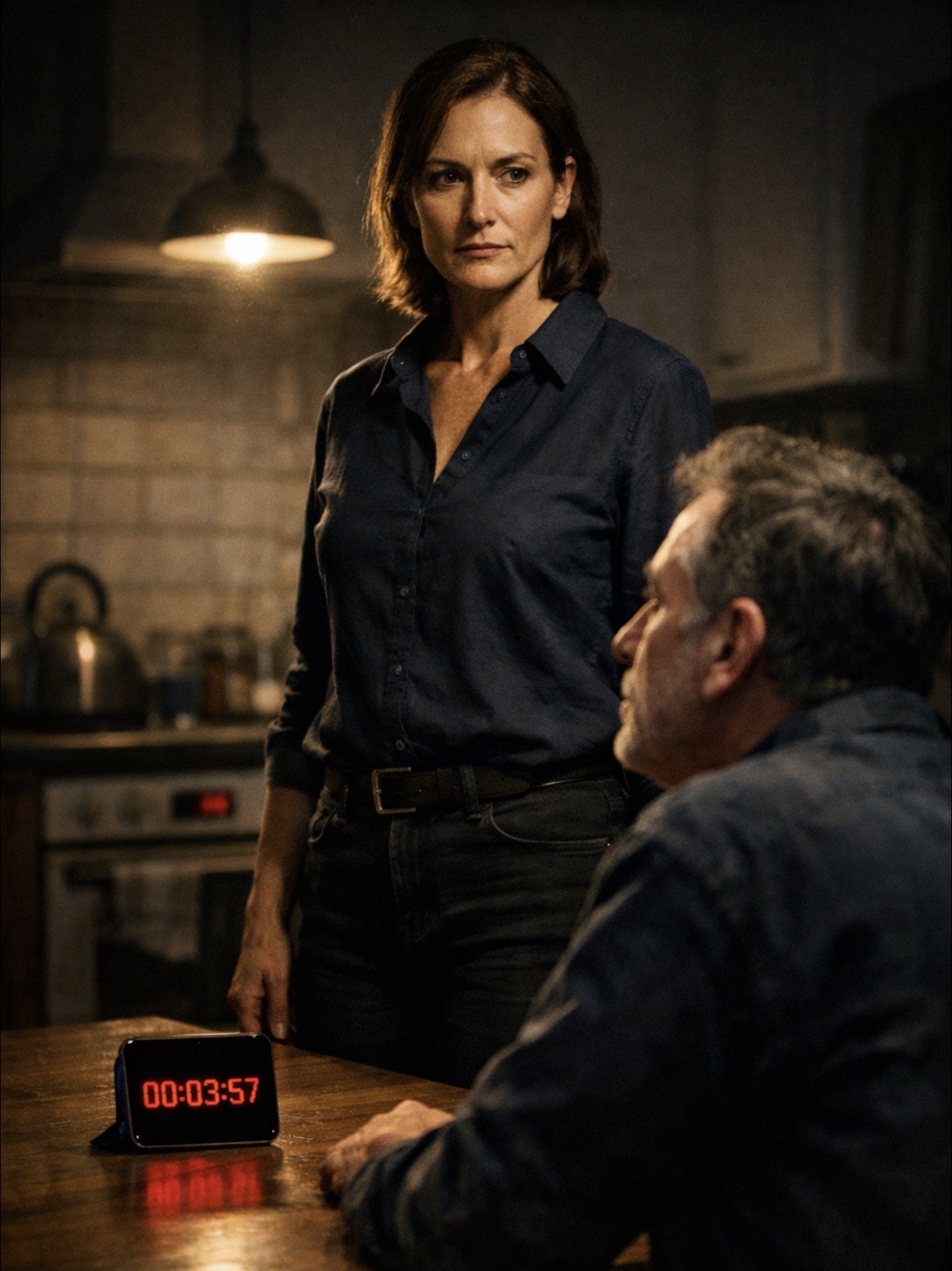 — Три минуты, Вера. Убеди меня не разводиться! — Виктор с напускной небрежностью откинулся на спинку стула, его взгляд скользнул по экрану смартфона, который он демонстративно положил на центр кухонного стола. Яркие красные цифры таймера начали свой отсчет, отмеряя не время, а, казалось, последние мгновения их двадцатилетнего брака.