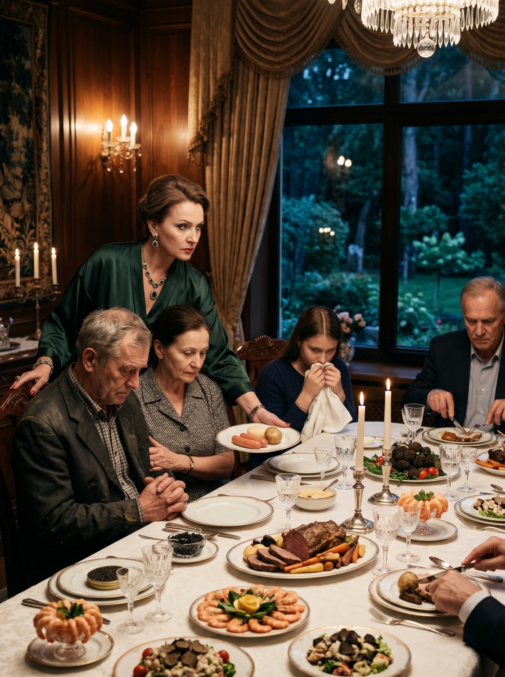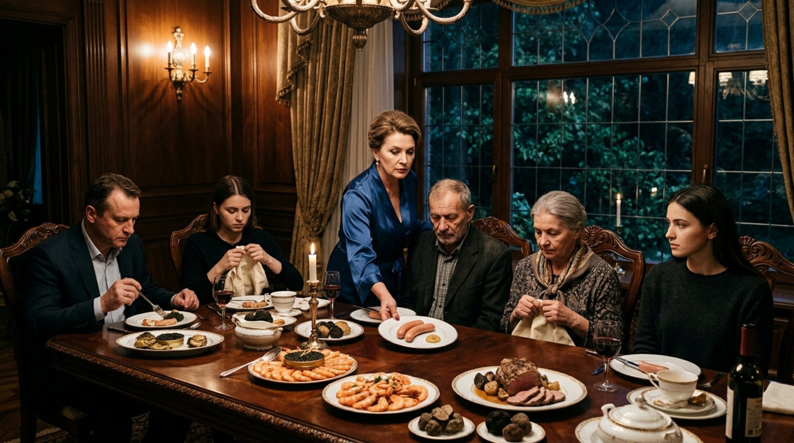 К вечеру все собрались за большим столом. Светлана Петровна с подчеркнутым достоинством разливала вино, демонстрируя безупречные манеры хозяйки. Я наблюдала за происходящим. Папа сидел чуть сгорбившись, стараясь быть незаметным. Мама изо всех сил поддерживала разговор со свёкром, который отвечал коротко и отстранённо, почти не поднимая глаз. Соломия, обычно шумная и живая, теперь молчала, нервно теребя салфетку.