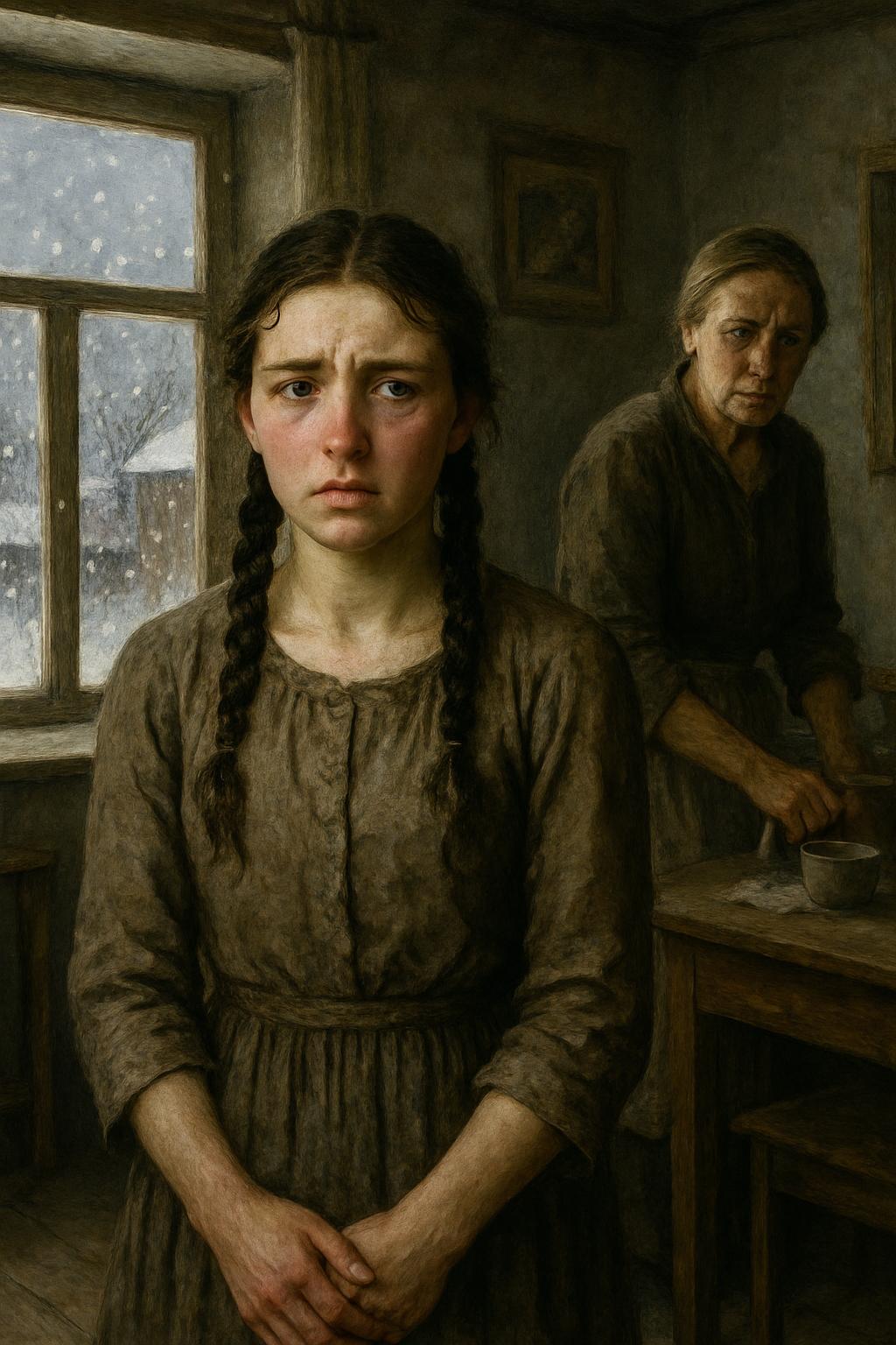 Николай Назаренко ввалился в избу шумно, будто медведь с мороза. Щёки его порозовели от стужи, он сбросил тулуп, тряхнул бородой, глянул на жену и дочь, нахмурился — понял без слов: опять слёзы.