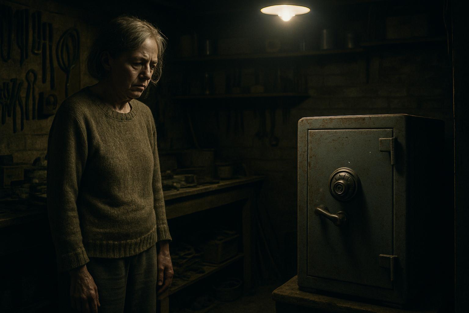 Он всё это время стоял здесь — серый, тяжёлый, с круглой ручкой и кодовым замком. Небольшой, но внушительный. Юстина присела перед ним и долго не отводила взгляда.