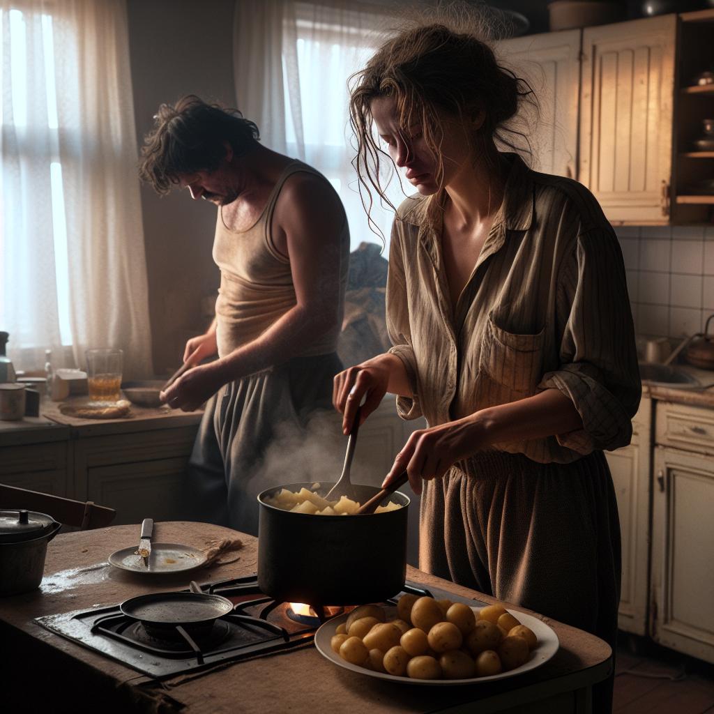 Оксана медленно повернулась от плиты, где лениво кипела картошка. Остатки сил ушли на то, чтобы хотя бы это довести до готовности. В отражении чайника она увидела своё лицо: пылающие щеки, прилипшие ко лбу влажные волосы и затуманенный взгляд.